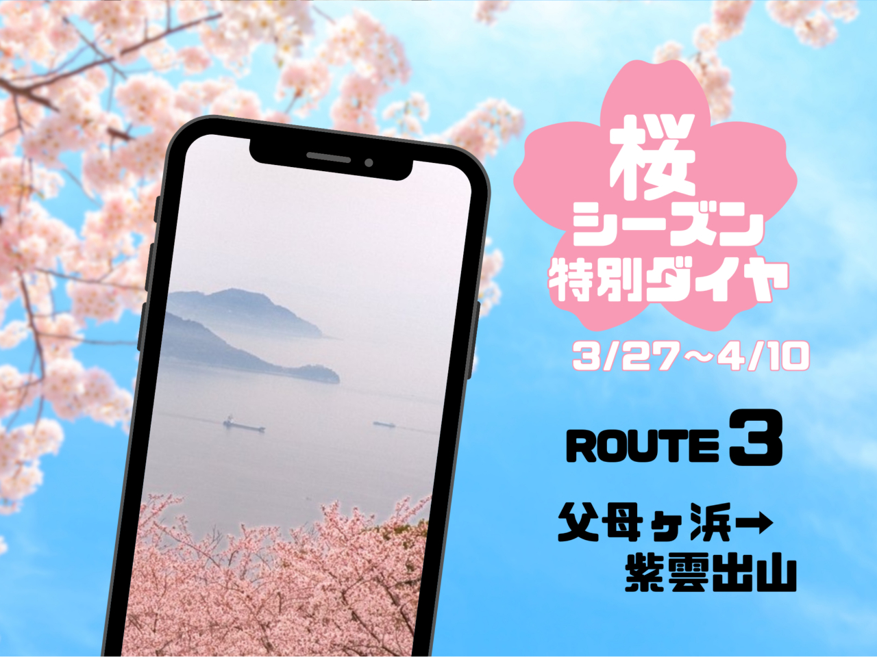 - 3/27〜4/10の運行はこちら【3/2AM10時予約開始】→ROUTEB紫雲出...