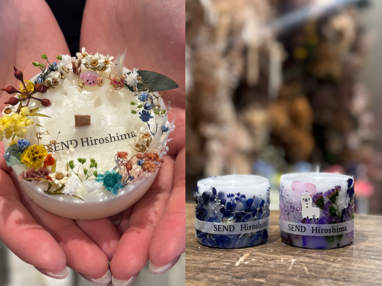- 広島での思い出作りに本格的なキャンドル作りはいかがですか?制作できるキャンドルの種類は10種類以上!さらに利用できるお花の種類は日本一の数を誇る200種以上。世界で1本のキャンドル作ってみてね。
