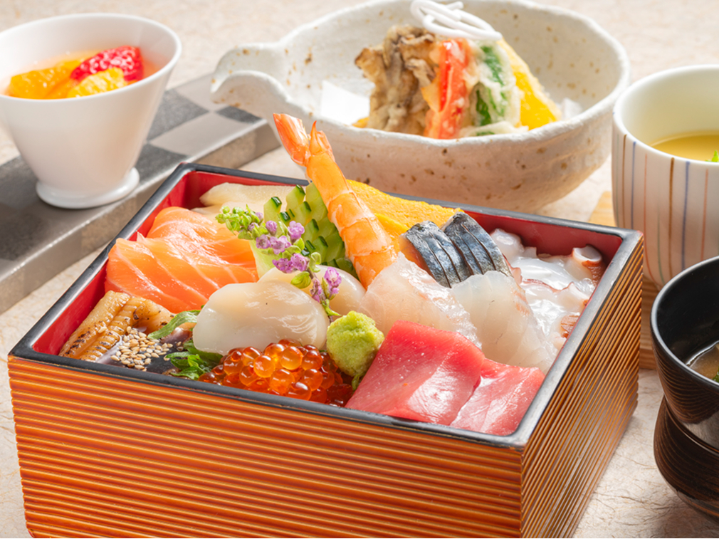 - 海の幸を彩り豊かに盛り込んだ海鮮重