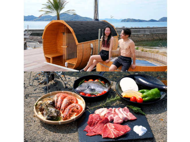 - 完全貸切アウトドアサウナ。自分で温度調節可能、セルフロウリュウで好きな温度で体験いただけます。 目の前の瀬戸内海を一望しながら、ご家族、ご友人とプライベート空間で、サウナをおたのしみください♪