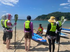 - くつろげる古民家の目の前!!プライベートビーチでSUP体験プラン☆ 体験終わったら古民家でくつろいでいただけます。 小学生のお子様から、60歳以上の方まで幅広い方にお楽しみいただけます♪