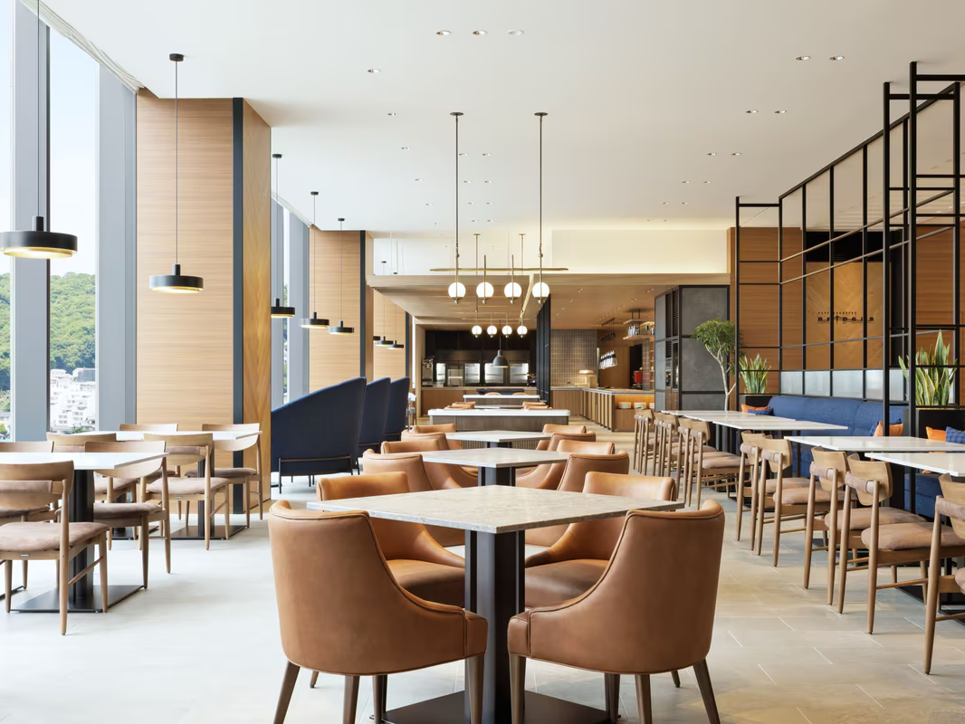 瀬戸内海と広島市内を一望できる上層階レストランでお楽しみいただくランチ&ディナー。 朝日、夕日、瀬戸内海、夜景など時間とともに変わる情景とともにご堪能いただけます。