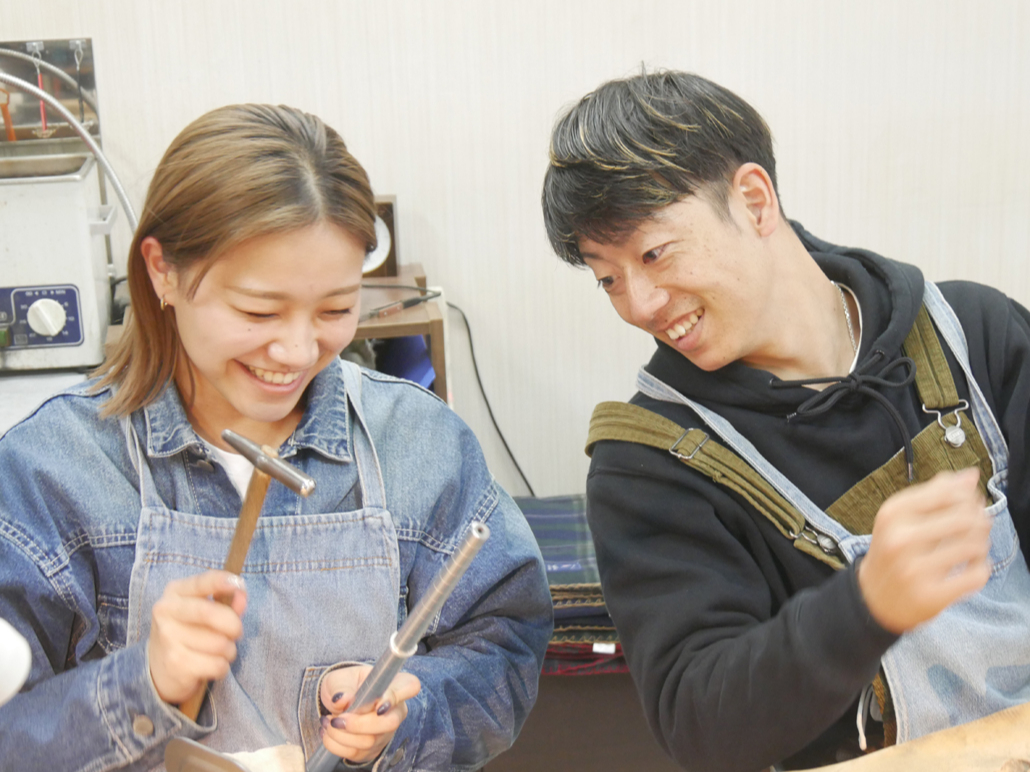 - ◇所要時間:3時間 ◇Silver 6,000円〜 ※指輪の素材や幅感によって変動します ◇完成まで2週間〜1か月程度 ◇職人がしっかりサポートするので初心者も安心◎ ◇手作り結婚指輪の製作も可能です