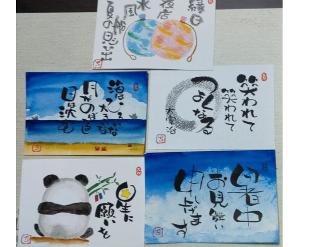 - ●ふでペンで自由に創造力を使って書く【己書】街で見かけたこともあるかも?! ●文字×色×イラストで素敵な絵葉書を作れます ●初めての方でも・字や絵が下手でも・大丈夫!自分の素敵な才能見つけちゃおう!