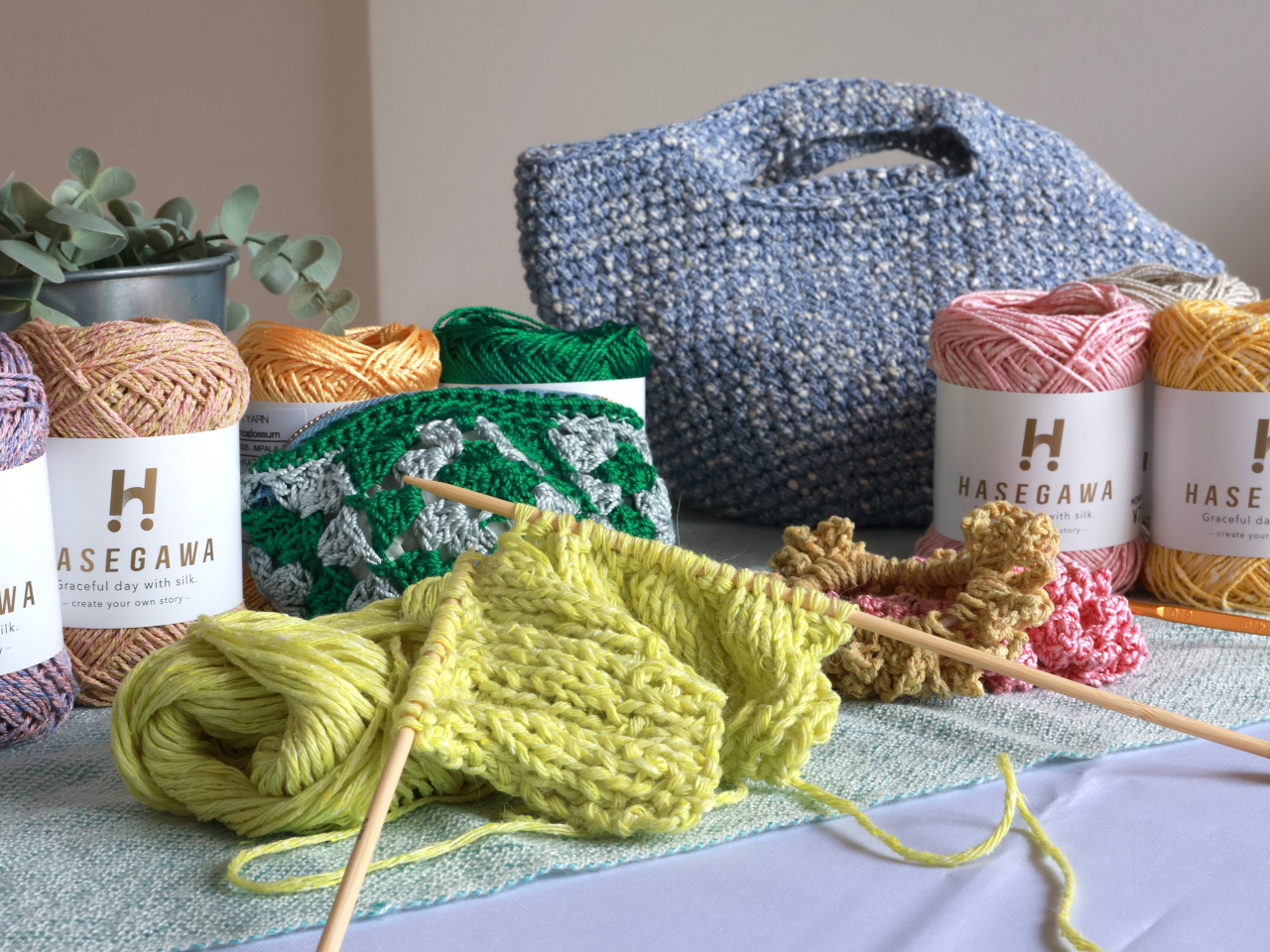 お好きなバッグのフリーレッスン【岩倉市】★ネットに塩ビのテープを通したり、かぎ針でヤーンを編みつけハイクオリティなバッグや小物が作れる★