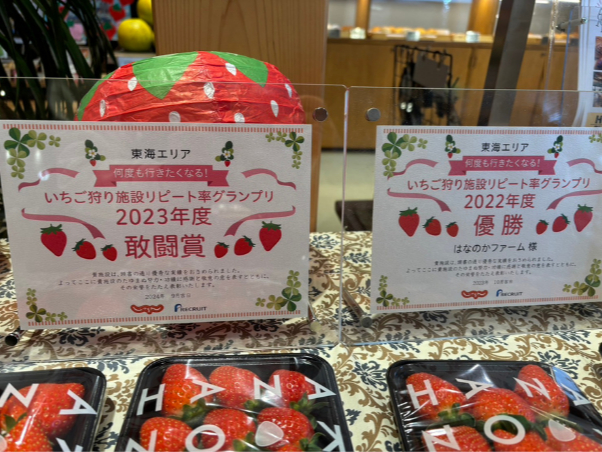 じゃらん”全国”いちご狩り人気施設グランプリ:第3位 受賞 ・ じゃらん東海エリアいちご狩り人気施設グランプリ:敢闘賞 受賞 (5年連続受賞)じゃらん東海エリアいちご狩りリ...
