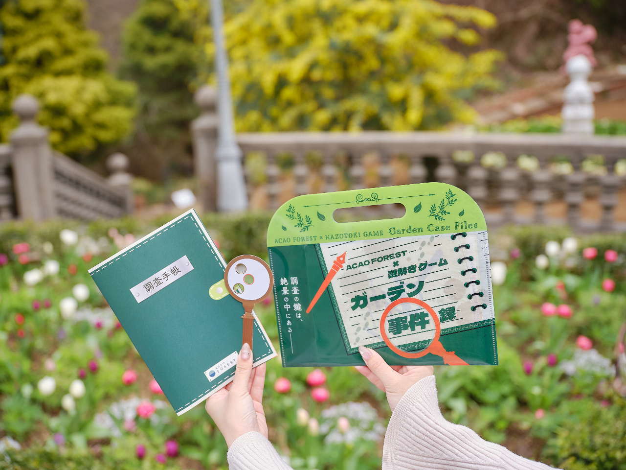 - ACAO FORESTの広大な敷地を舞台に開催する体験型の謎解きゲーム。 ゲームの参加者は謎解きキットを片手に、園内各所に点在する手がかりを探しながら謎の解明に挑戦します。