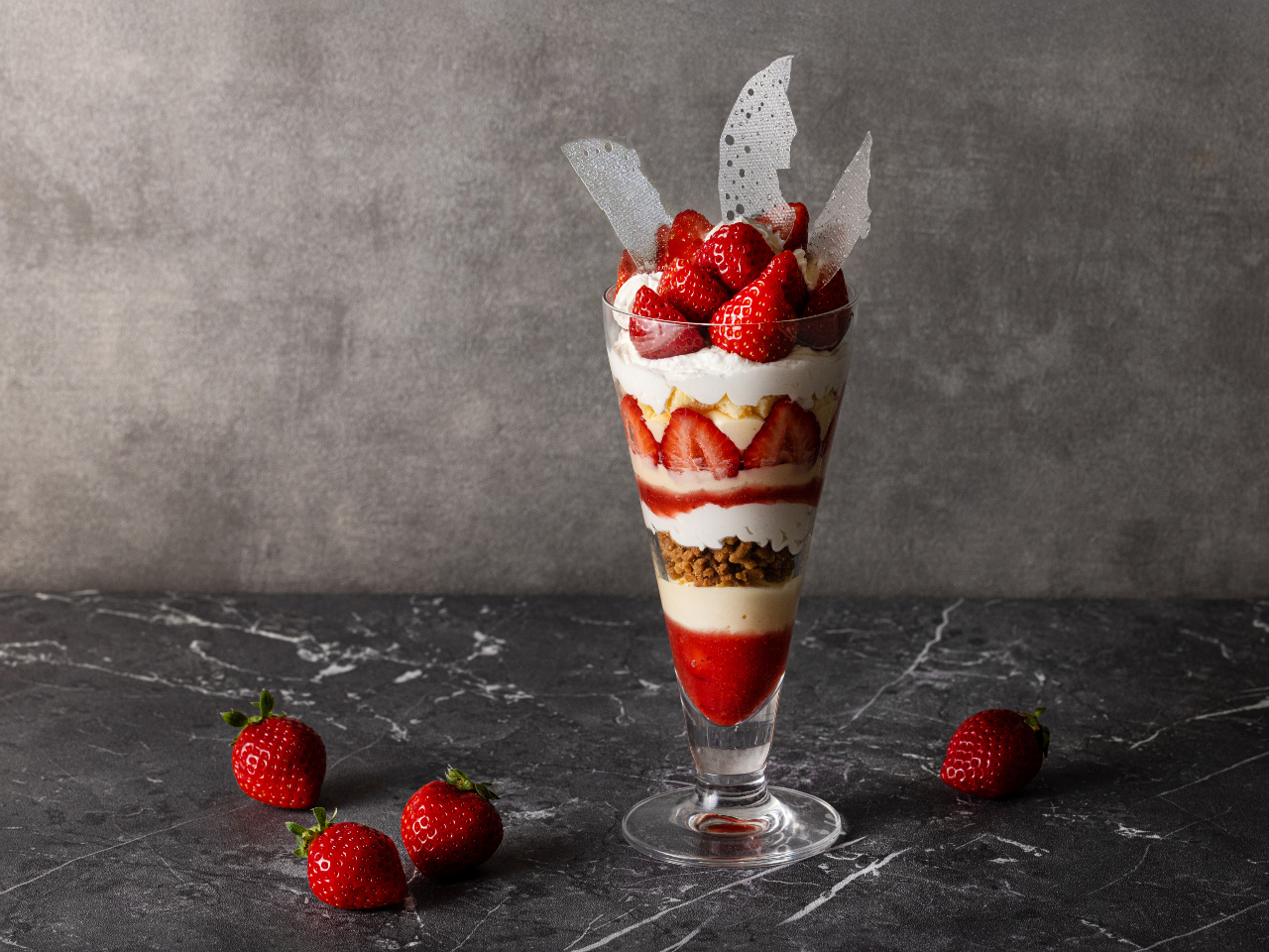 - あまおうの上品な酸味や甘みをご堪能いただける季節限定のパフェメニュー。JR川崎駅から徒歩1分の川崎日航ホテル内のバー「夜間飛行」で贅沢なひと時を。