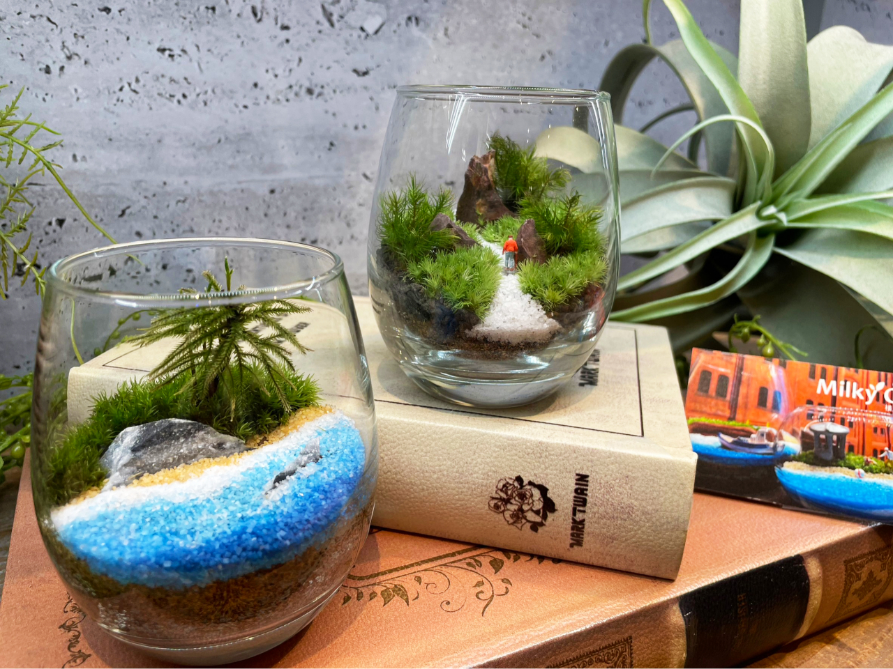 - 都会のマンションや職場でも植物に囲まれた生活がしたい 忙しい毎日なので手入れは最小限で、出来れば鉢植えのように長く楽しみたい Terrariumsはその解決策として苔のテラリウムを提案しています♪
