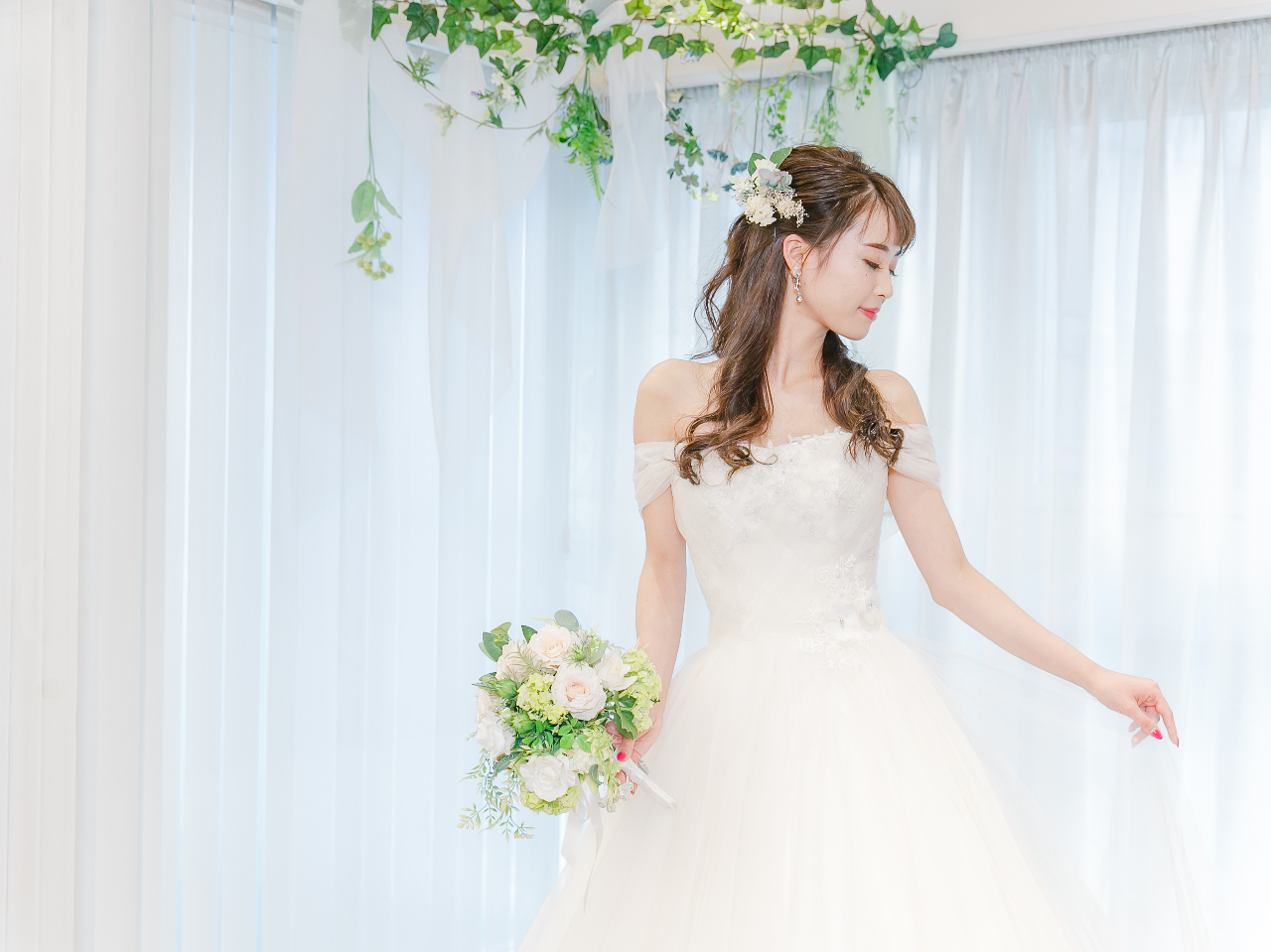 - 大人気の【ブランドドレス試着体験】を更にワンランクグレードアップ! 映えること間違いなし!「フラワーアーチ」のお座りショットが撮影できます!