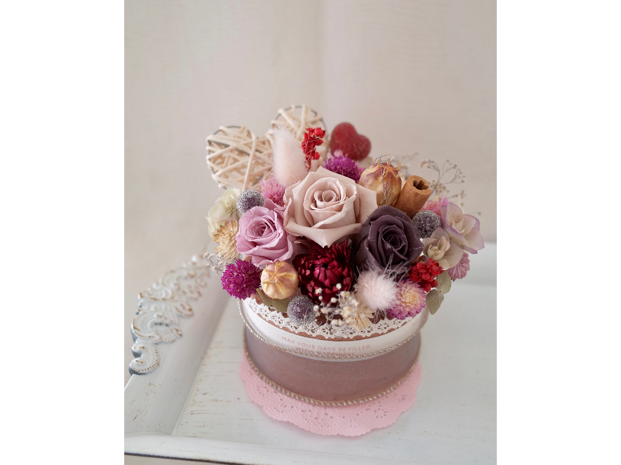 - プリザーブドフラワーやドライフラワーで バレンタインのフラワーケーキ作りが体験できます◎ お気軽にご参加ください!