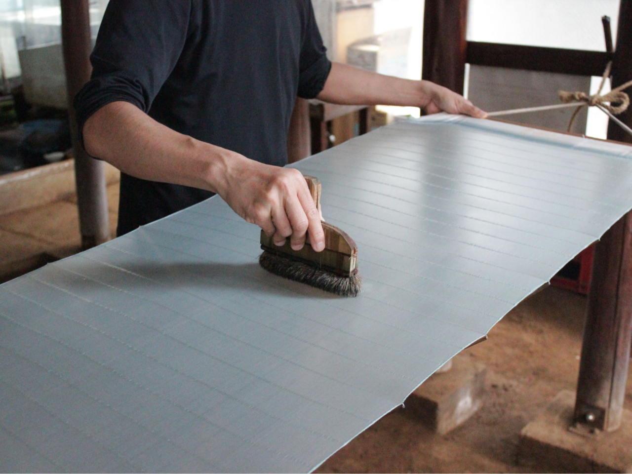 染色の作業と作品を見学できる。工房資料もあるのでギャラリーで声かけてください。体験をすると工房見学が内覧できます