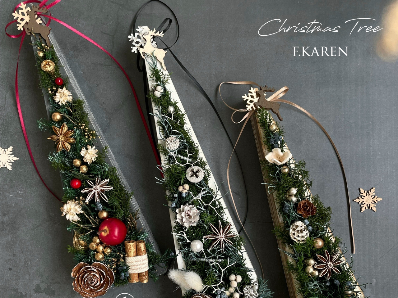 - どなたでも簡単・可愛く作れる! クリスマスバトンツリー 森の香りが残るプリザーブドグリーンや木の実で、 オリジナルのクリスマスツリーを作りませんか? お子様〜大人まで、どなたでもOK!