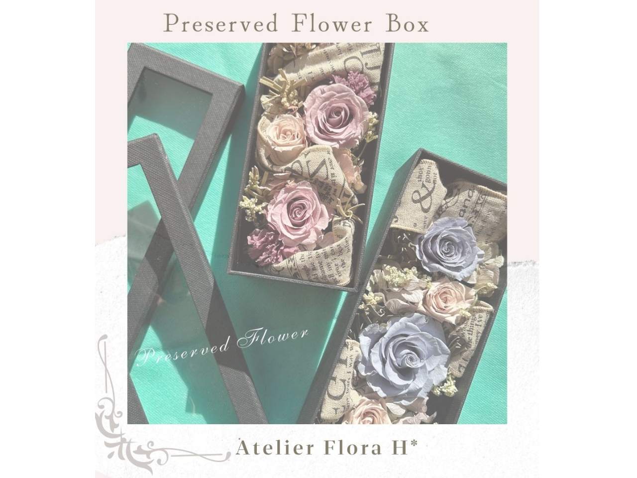 - 専用ポットへプリザーブドフラワーをお好みにアレンジメントしていきます。 大切な方への想いを作品に込めて・・・ 世界に一つだけのアレンジメントを作り!