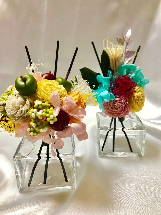 - プリザーブドフラワーを贅沢に使って、フラワーディフューザーとハーバリウムが作れるお得なコースです♪