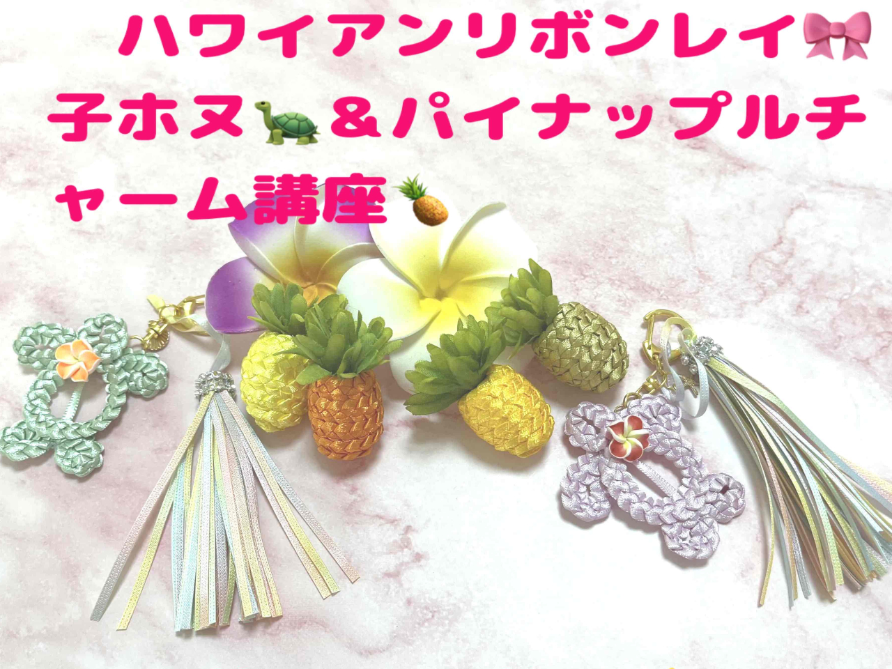 - リボンレイ★子ホヌ(カメ)&パイナップルチャーム講座♪ティータイム・お土産付き♪...