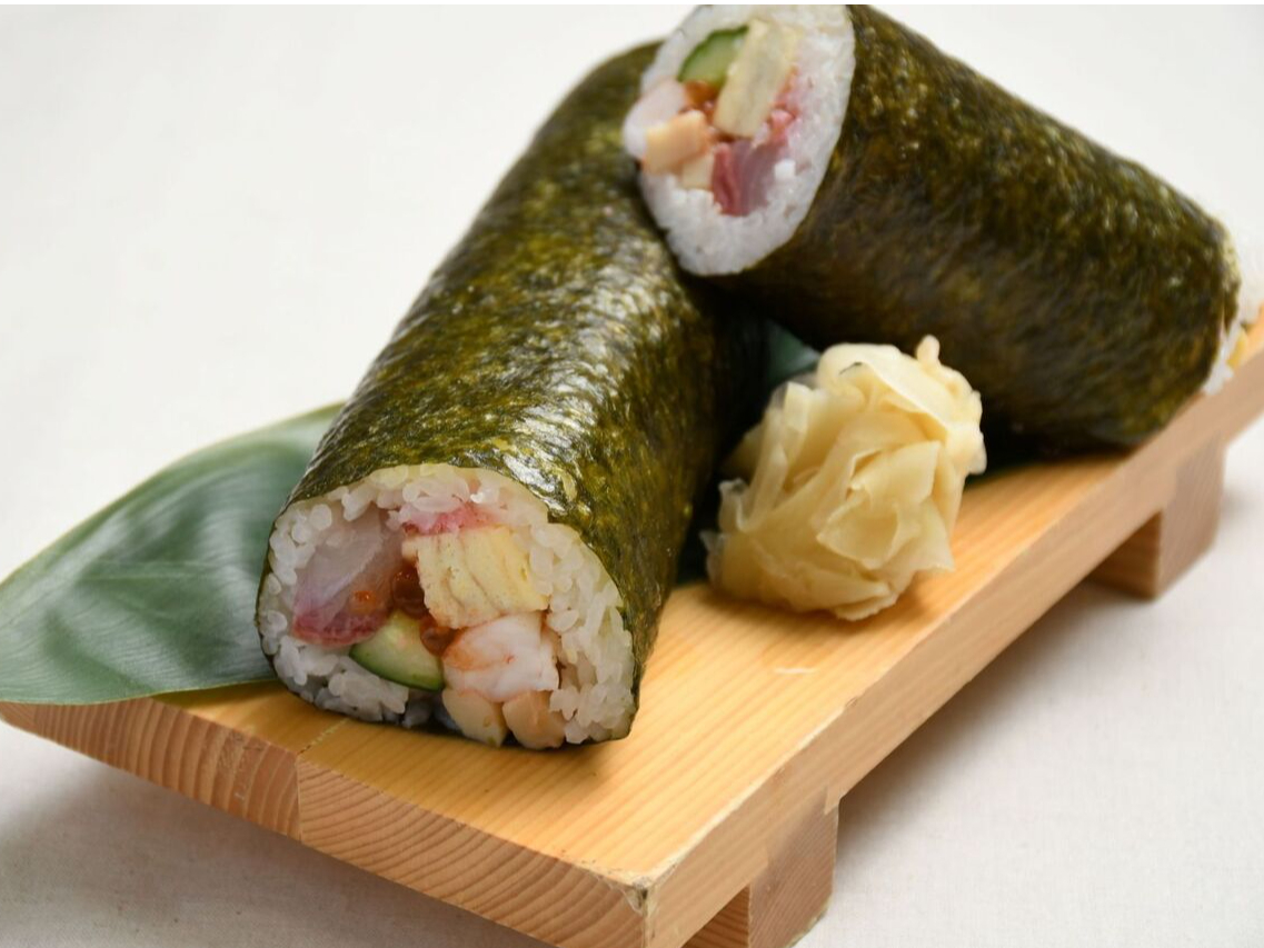 - 青森県の直営農場・東北牧場で丹精込めて育てられた「ブランド卵」や、ホテルメイドの「東京メンマ」など、他にはないこだわり具材を使用した、和食料理人がお届けするここでしか味わえない特別な恵方巻です。