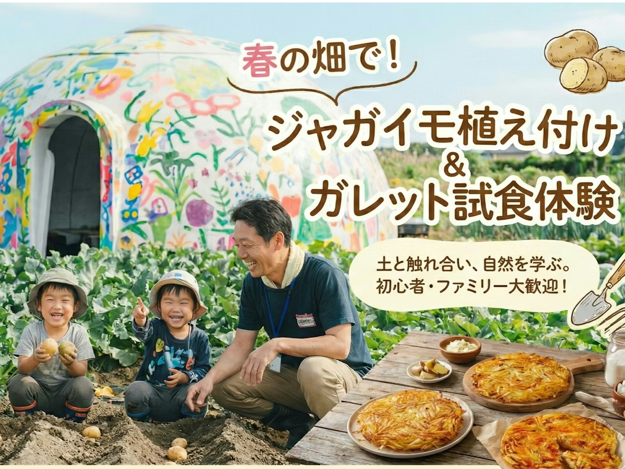 - 土おこし・畝づくりから挑戦。5種のじゃがいも植付けとガレット実食を楽しむ、親子におすすめの春農業体験