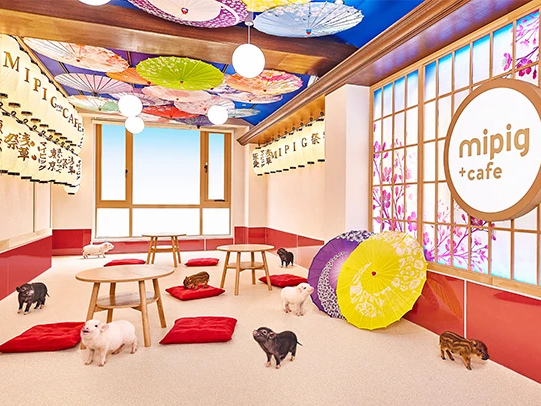 - 日本初のマイクロブタカフェ「mipig cafe」。 人懐っこいブタさんがそばに寄り添い、癒しと笑顔あふれる特別な時間をご提供します。