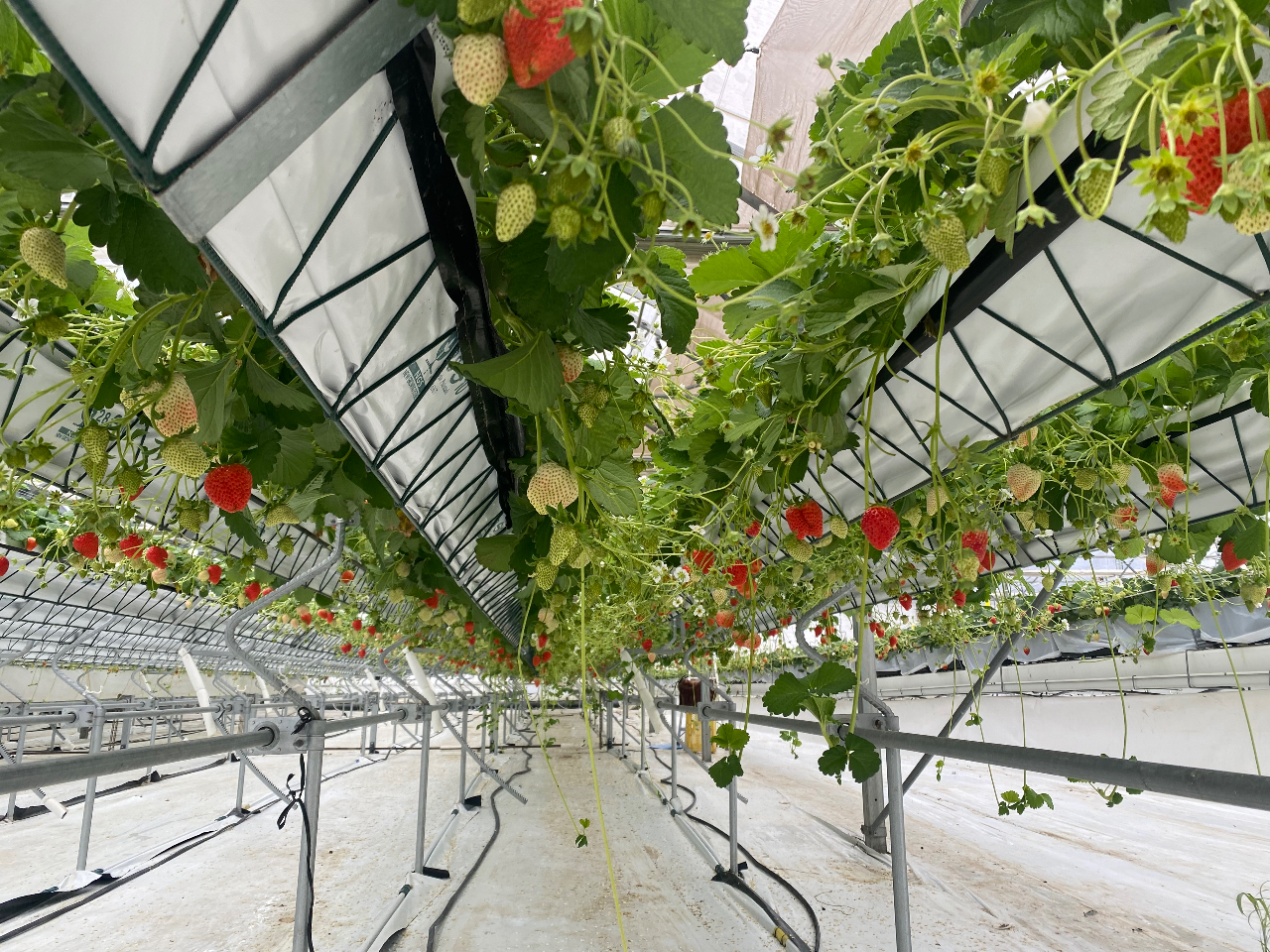 リッチフィールドアグリタウンの中にあるイチゴ温室は、清潔な設備の中で収穫もしやすい高さになっております。待合室ではウェルカムドリンクを提供しております。トッピングも5種類...