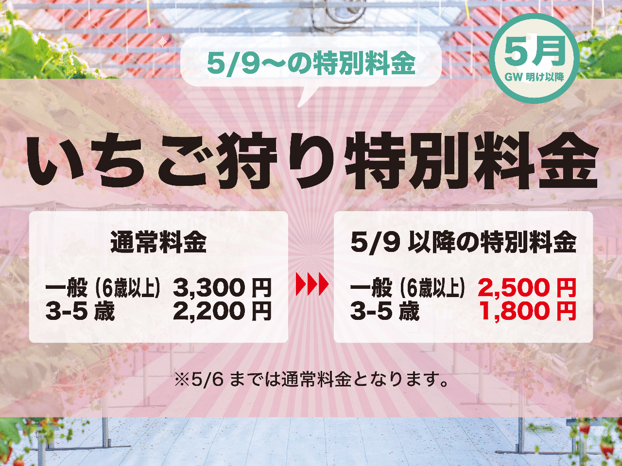 - ・GW以降、特別価格でご案内★ ・味に自信★高設栽培なのでしゃがまずにいちご狩りを楽しめます♪ ・7種類のいちごを栽培!車いす、ベビーカー専用レーンあり