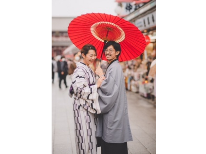 東京浅草旅行に着物結婚記念写真撮影プラン着付け小物フルセット!浅草寺から徒歩3分♪