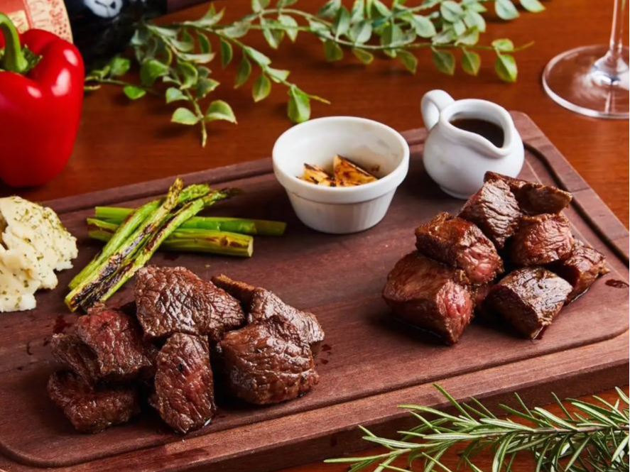 - 塊肉を鉄板で焼き上げる名物「チャックリブステーキ」をはじめ、ポークやチキンも!メイン級の肉料理を3品たっぷりご堪能いただける、当店の定番コースです。2時間飲み放題付き!カラオケ無料&お持ち込み自由です