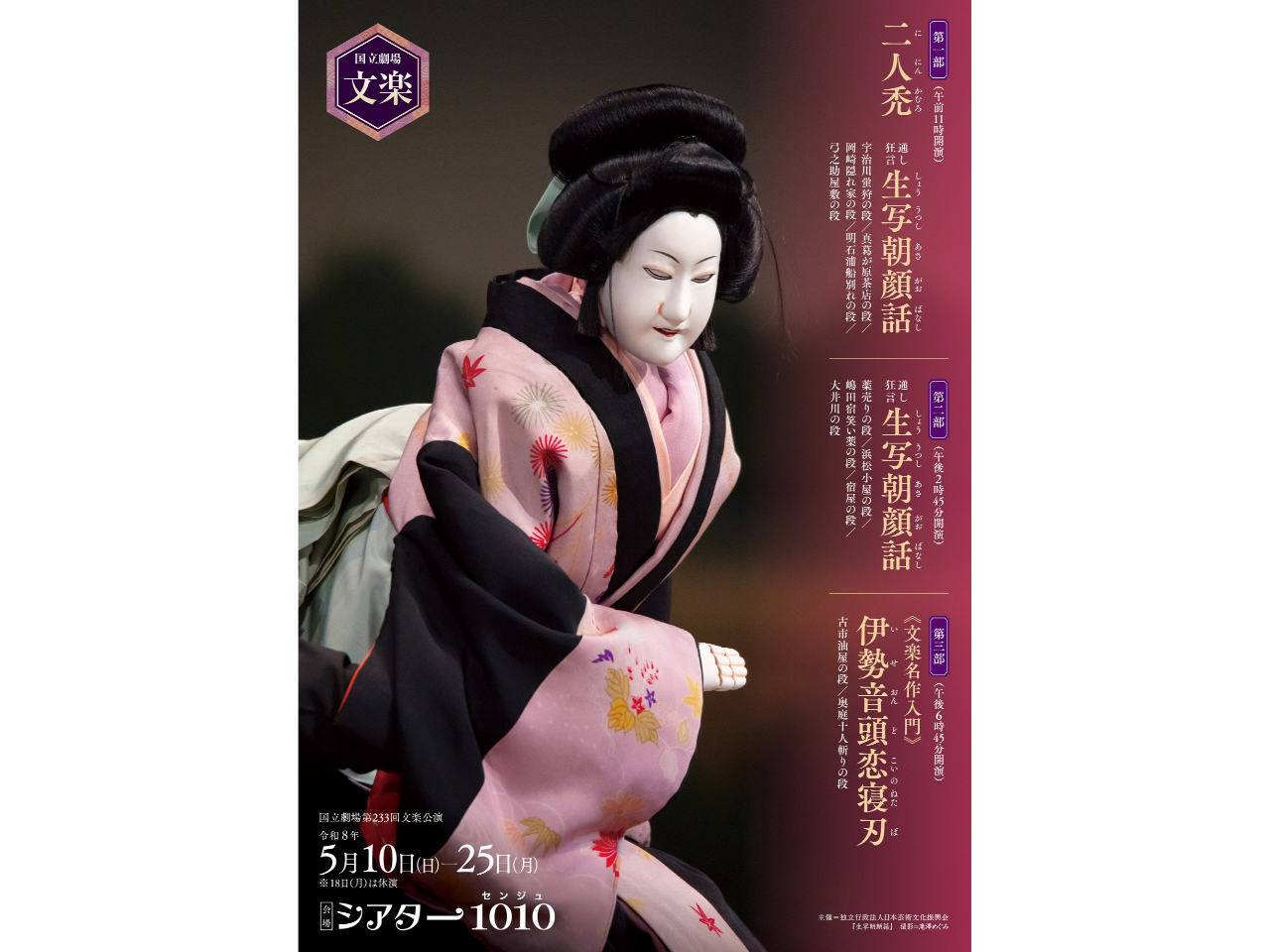 - 名作を北千住で!国立劇場 5月文楽公演 第一部『二人禿』『通し狂言 生写朝顔話』