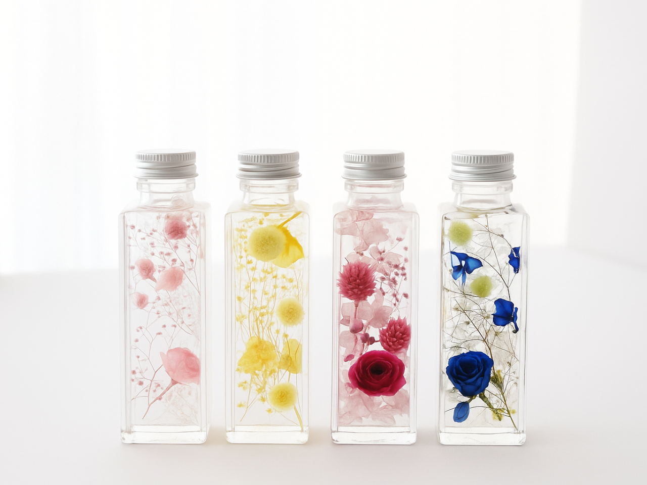 - ●初めての方大歓迎!ご用意している在庫の中からお好きな色のお花(プリザーブドフラワーやドライフラワー)やビンを選んでハーバリウムが作れます♪ ●おひとり様:2,500円