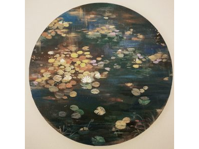 <銀座×アート>ワイン片手に、リラックスして楽しむアート体験♪モネ 睡蓮の秋 30cm丸キャンバス【ファミリー・カップル・女性におすすめ】