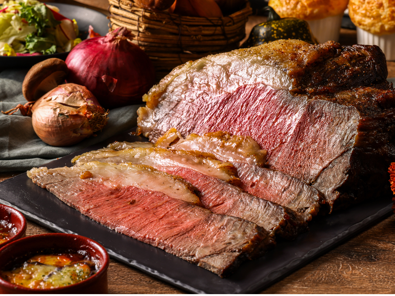 - 和牛サーロインのローストビーフを始め、パフォーマンスコーナーで仕上げる出来立てのお料理をご用意いたします。さらに、ホテル内レストラン「中国料理 古稀殿」、「和食 むさし野」監修の新メニューも登場。