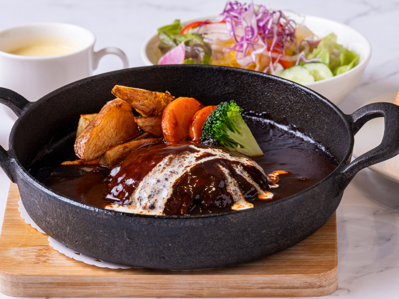 - ▼週替わりで3種類のメインが登場 ▼ミニサラダ・ミニスープ・バゲットまたはライス・ミニデザート付 ▼開放感のある広々とした空間で、寛ぎのひとときをお楽しみください
