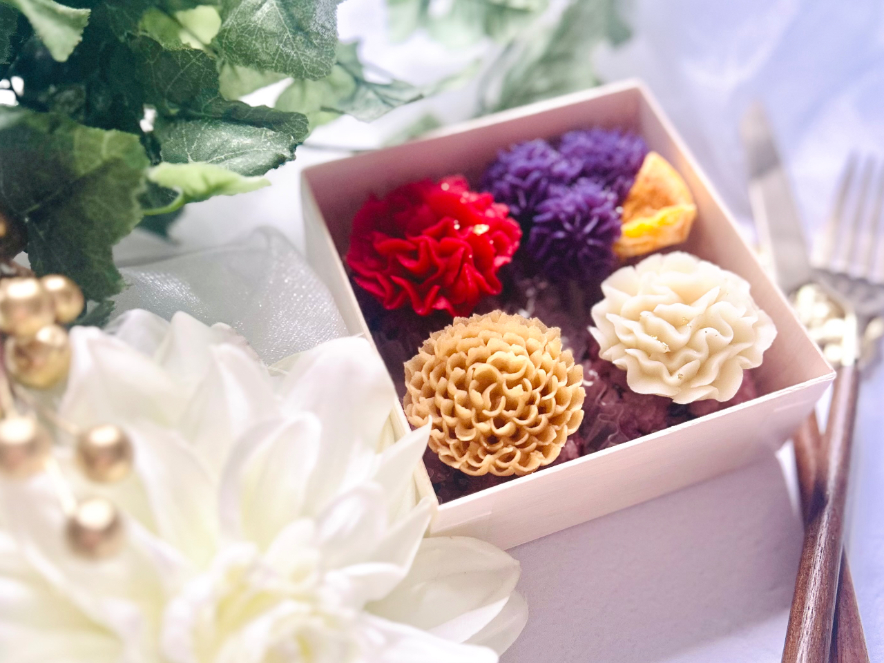 - お豆腐を使ったヘルシーもちもちお団子に春らしいデザインの桜をモチーフに彩った美しいお団子ボックスを作ります。 初心者の方や初めてお話絞りに挑戦する方にも楽しんでいただける内容です。