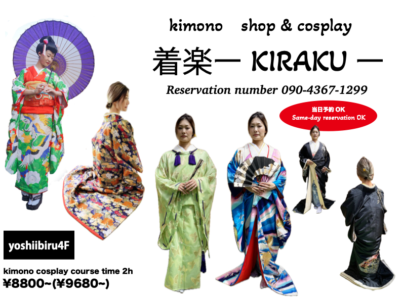 - ●全300種類以上の着物・浴衣からお好きなものをお選び頂けます ●帯や小物も自由に選べて、好きなコーディネートを楽しんでください ●着付けに必要な小物は全て揃っているので、追加料金なしで楽しめます!