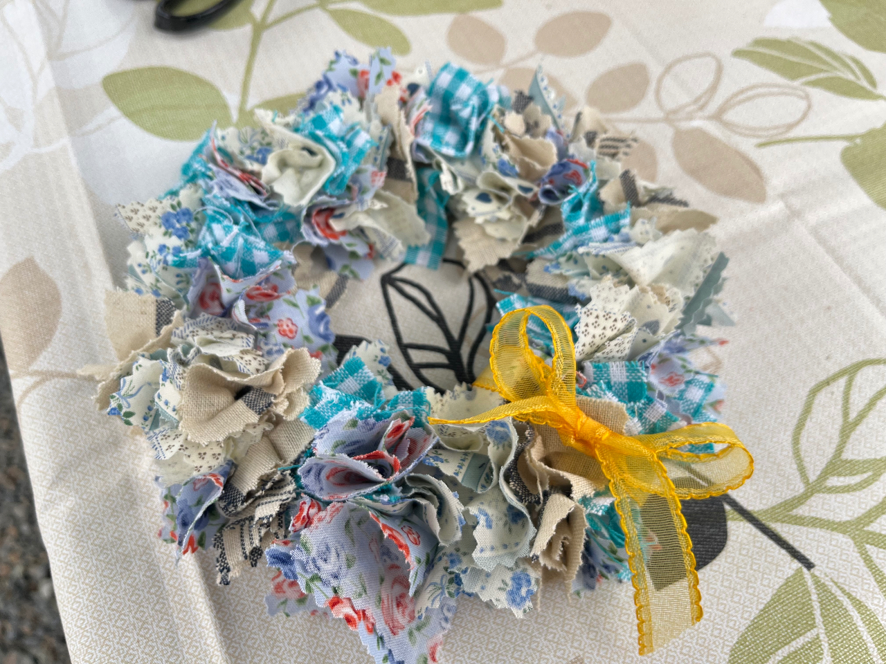 - 生地を使用したかわいい布リース。温かみのある、おしゃれでかわいいmaman布リースです。