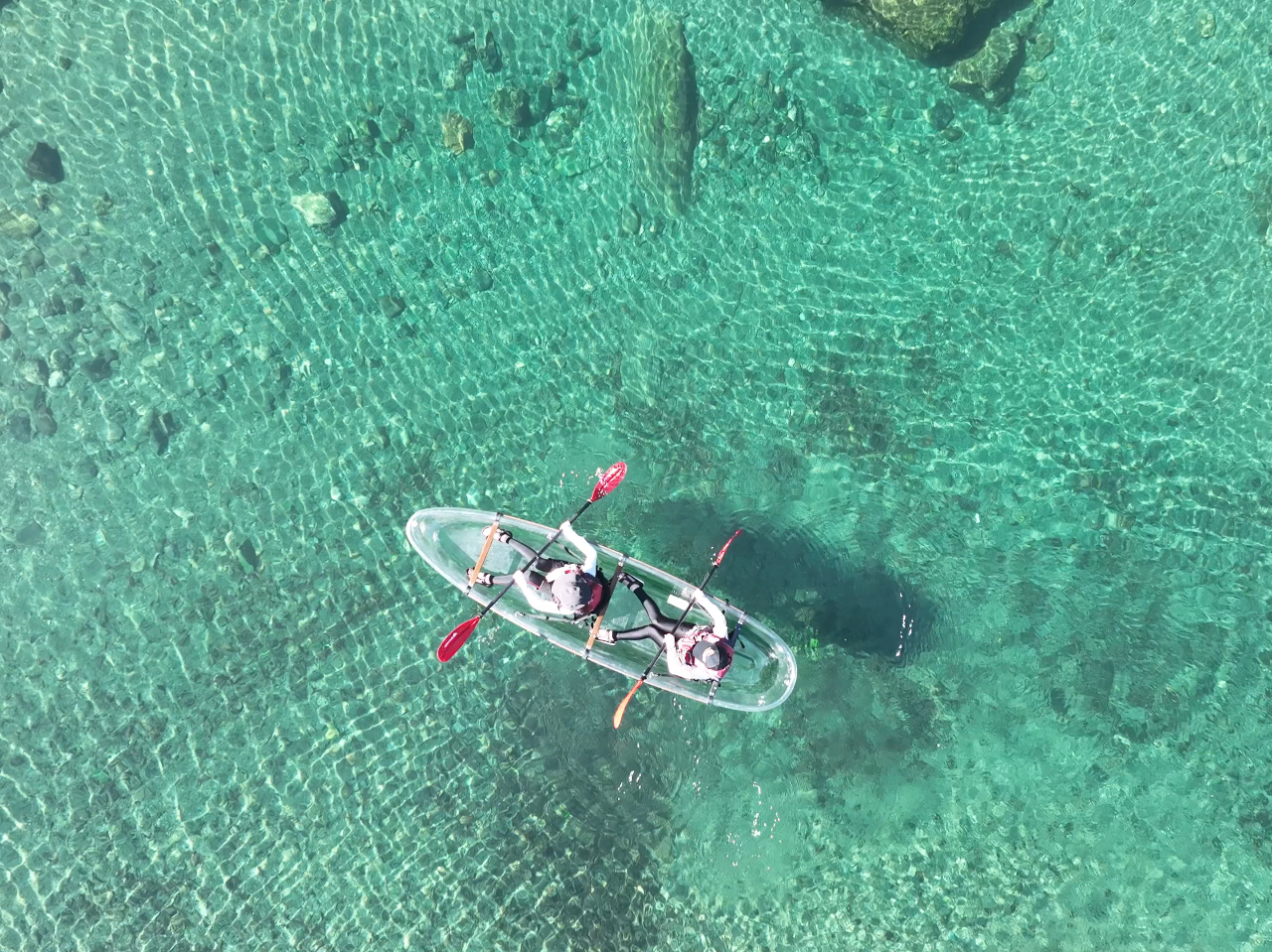 【NOC仁淀川アウトドアセンター】「クリスタルカヤック」全部付き定番プラン/透明の舟、水上カメラ撮影、ドローン空撮、ウェア・レンタル品充実、待合室、トイレ、売店、駐車場完備(上流仁淀ブルーエリア)