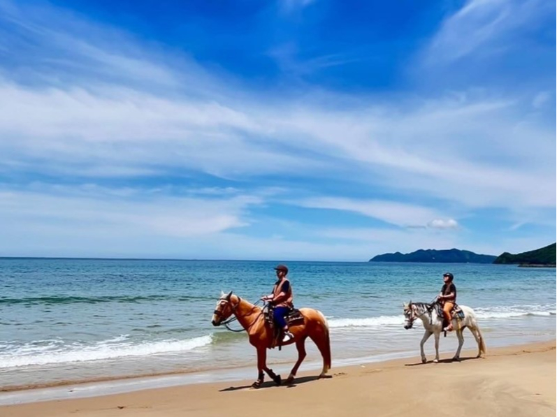 - 玄界灘の壮大なビーチ、田園地帯、川、森と様々なコースからその日の天候や季節によって、地域を熟知したガイドがプランをコーディネート♪ 県外の方からも大人気の本格乗馬体験プランです!