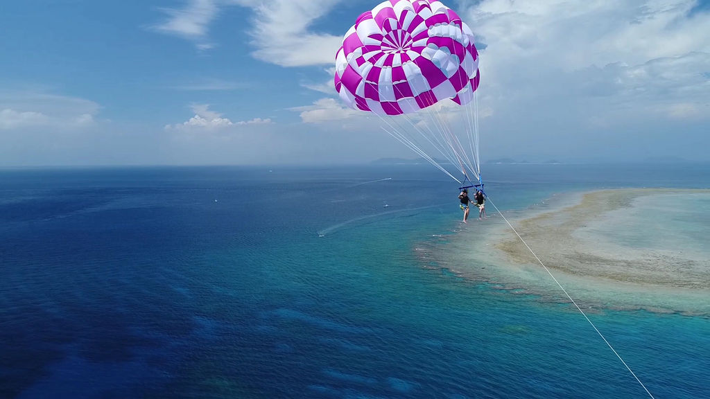 - 海中道路、浜比嘉、平安座島、伊計島、津堅島周辺でお手軽パラセーリングが楽しめます. 上空30メートル以上の青い空での空中散歩はコバルトブルーの海一面が見渡せ最高の開放感と感動を味わうことができます。