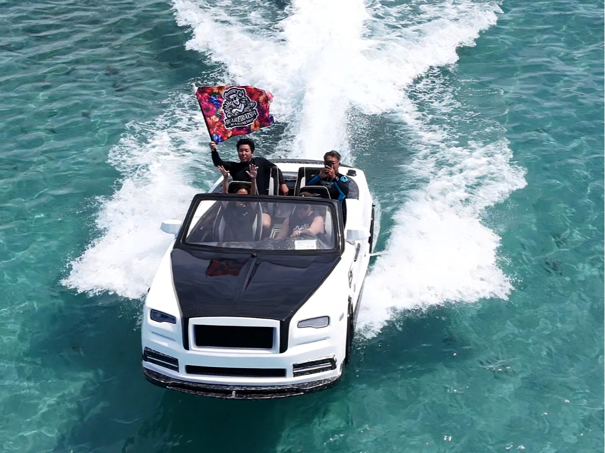 【名護市・今帰仁村・古宇利島】お子様でも運転できる海上ゴーカート!!免許不要のアクアクルーザー!家族一緒に今帰仁ブルーを楽しもう!