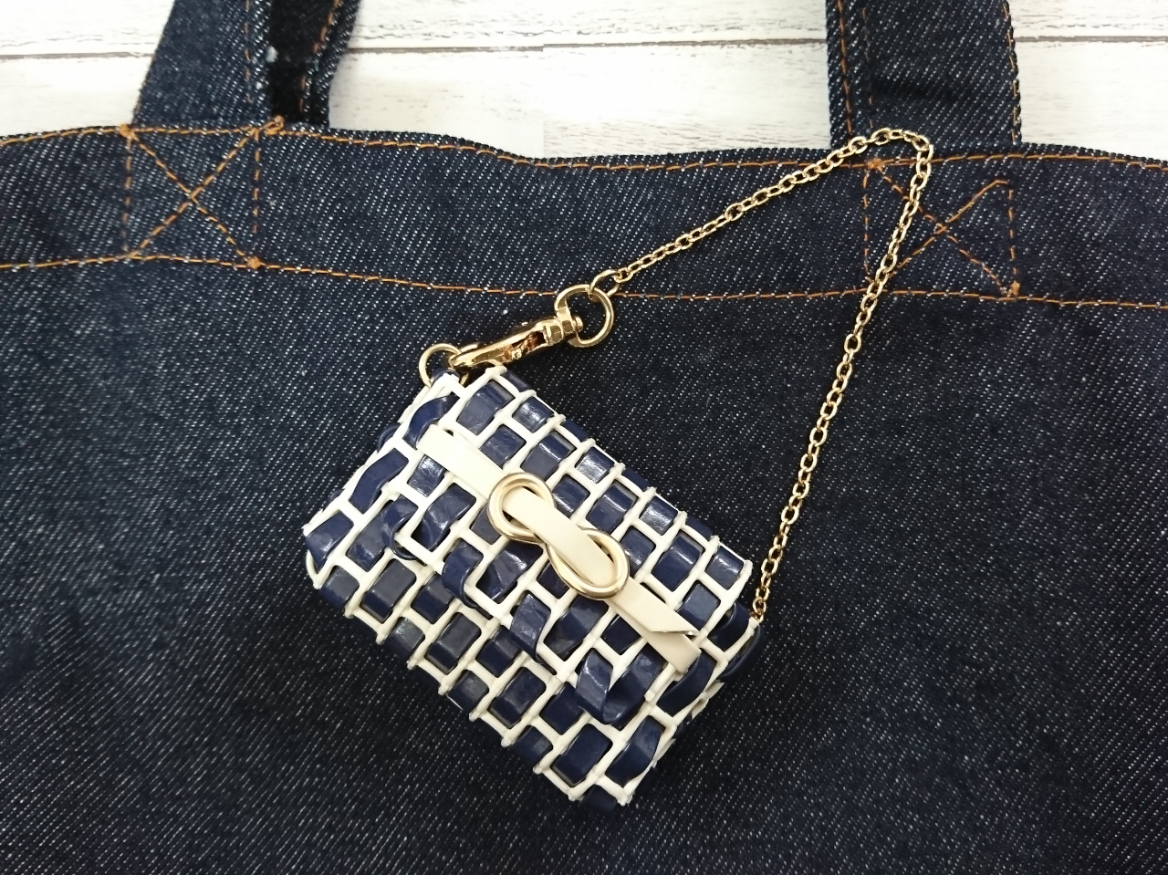 - ビニールのコードを網のようなネットに通して作るバッグ型のバッグチャームを作りましょう。 30色以上のなかからお好きな色から選んで作成いただけます♪ 初めての方でも1時間程度でおつくりいただけます。