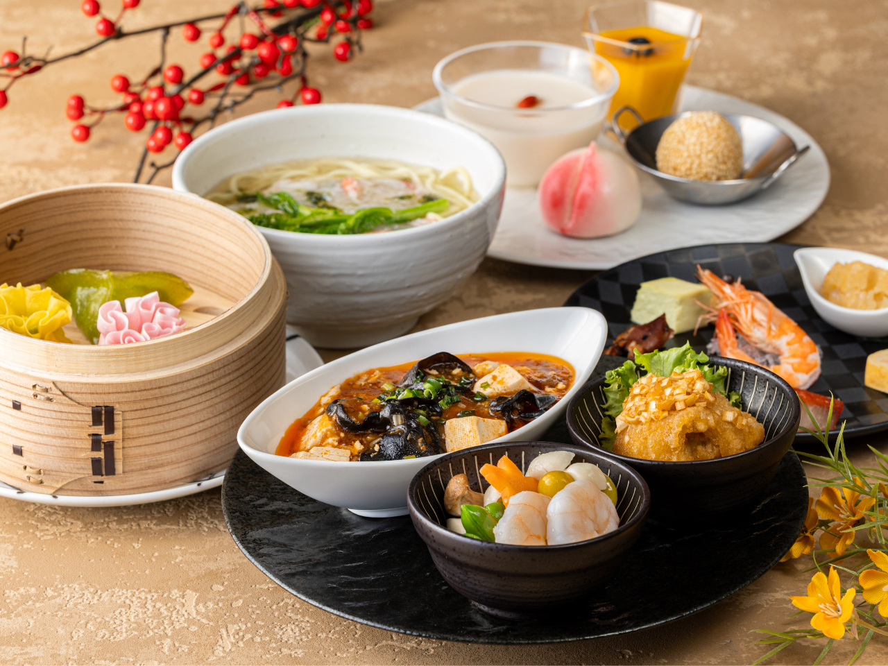 - ホテルならではの落ち着いた空間で、 北京ダックをはじめ牛フィレ肉など、 料理長おすすめ8品が楽しめるコース「味覚菜譜」プランをぜひご賞味ください。