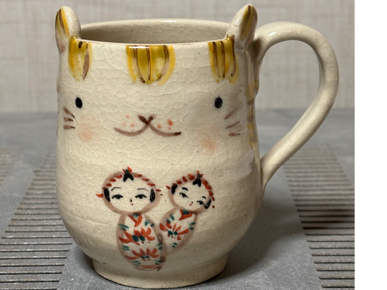 - 個室 本格的な陶器に上絵付体験★描き直しが可能なので失敗しても安心 どうやっても物凄く可愛くなっちゃう 猫耳取手カップ 猫ミミカップ 猫皿ですよ