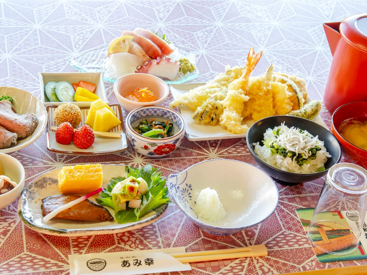 - ★少人数での貸切プラン お料理はさくさくの揚げたて天ぷら♪お刺身の船盛以外すべて個別盛。 うれしいイス・テーブル席でらくらくです。 乗船桟橋は9カ所ある船着場からお選びください。