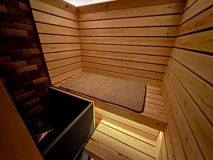 - 大地や自然の色に近いアースカラーを基調とした落ち着きのある空間に、 サウナ、水風呂、休憩スペースを完備。 あたたかいお風呂で心まで癒し、ぬくもりに浸ってください。