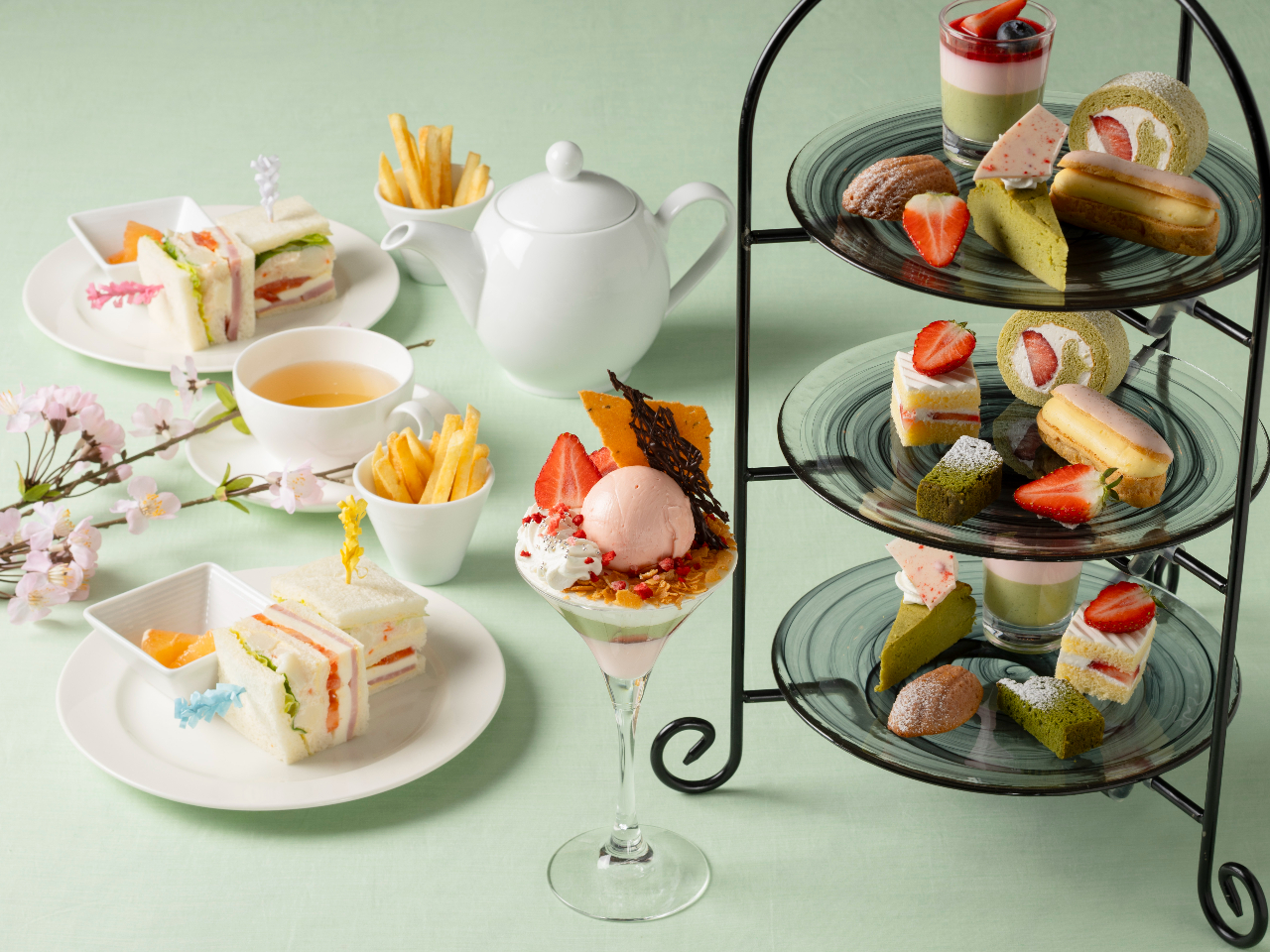 限定パフェ付【苺と抹茶のアフタヌーンティーセット】