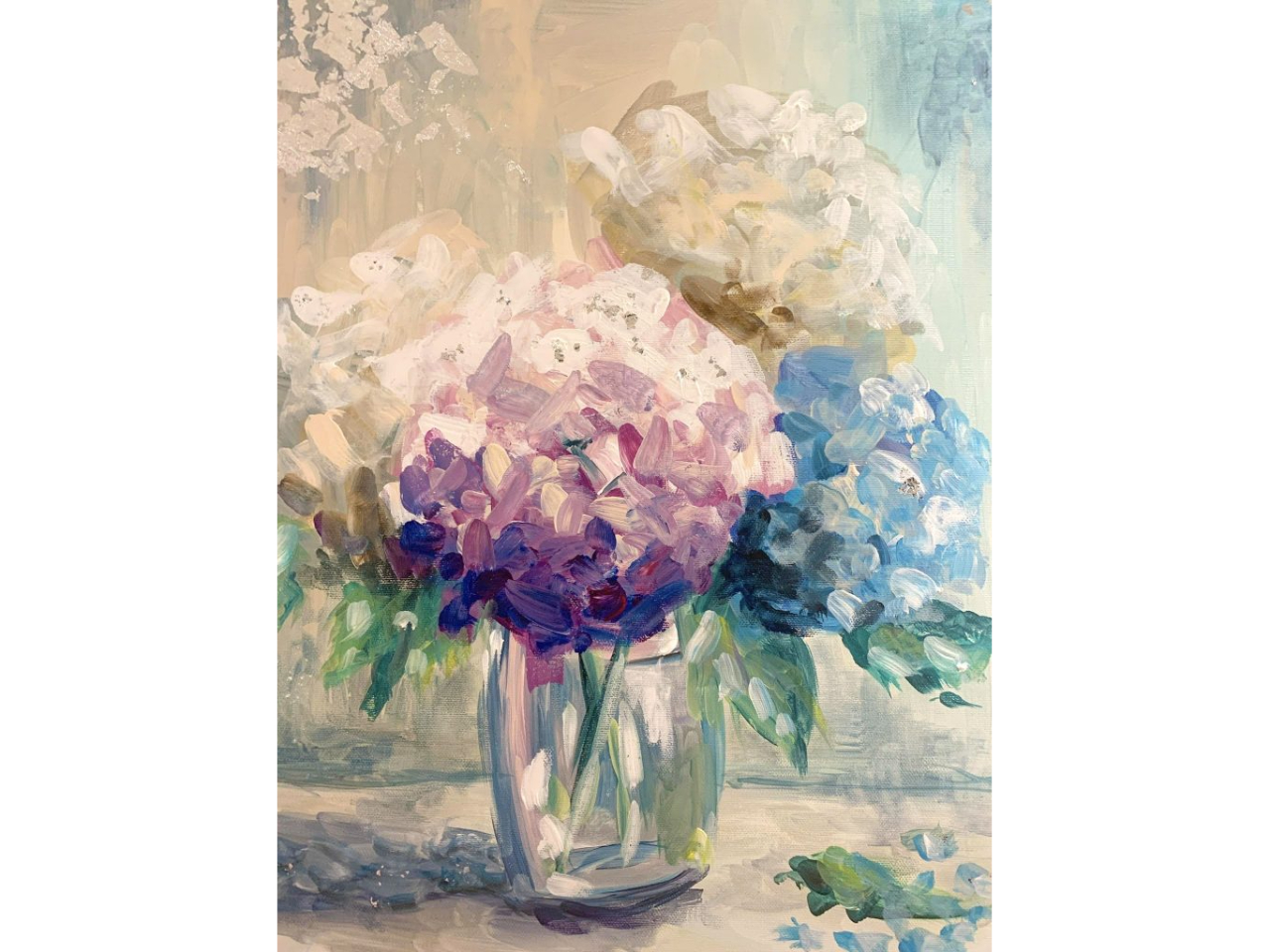 <代官山×アート>ワイン片手に、リラックスして楽しむアート体験♪ペインティングナイフでテクスチャーブーケ.【ファミリー・カップル・女性におすすめ】