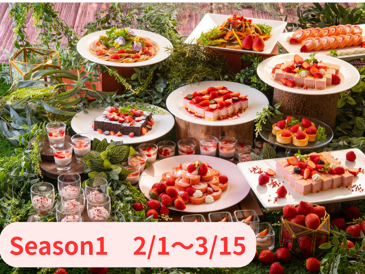 - 苺が主役のランチブッフェがスタートします♪ 苺を使用したスイーツとお料理の数々をお楽しみください!