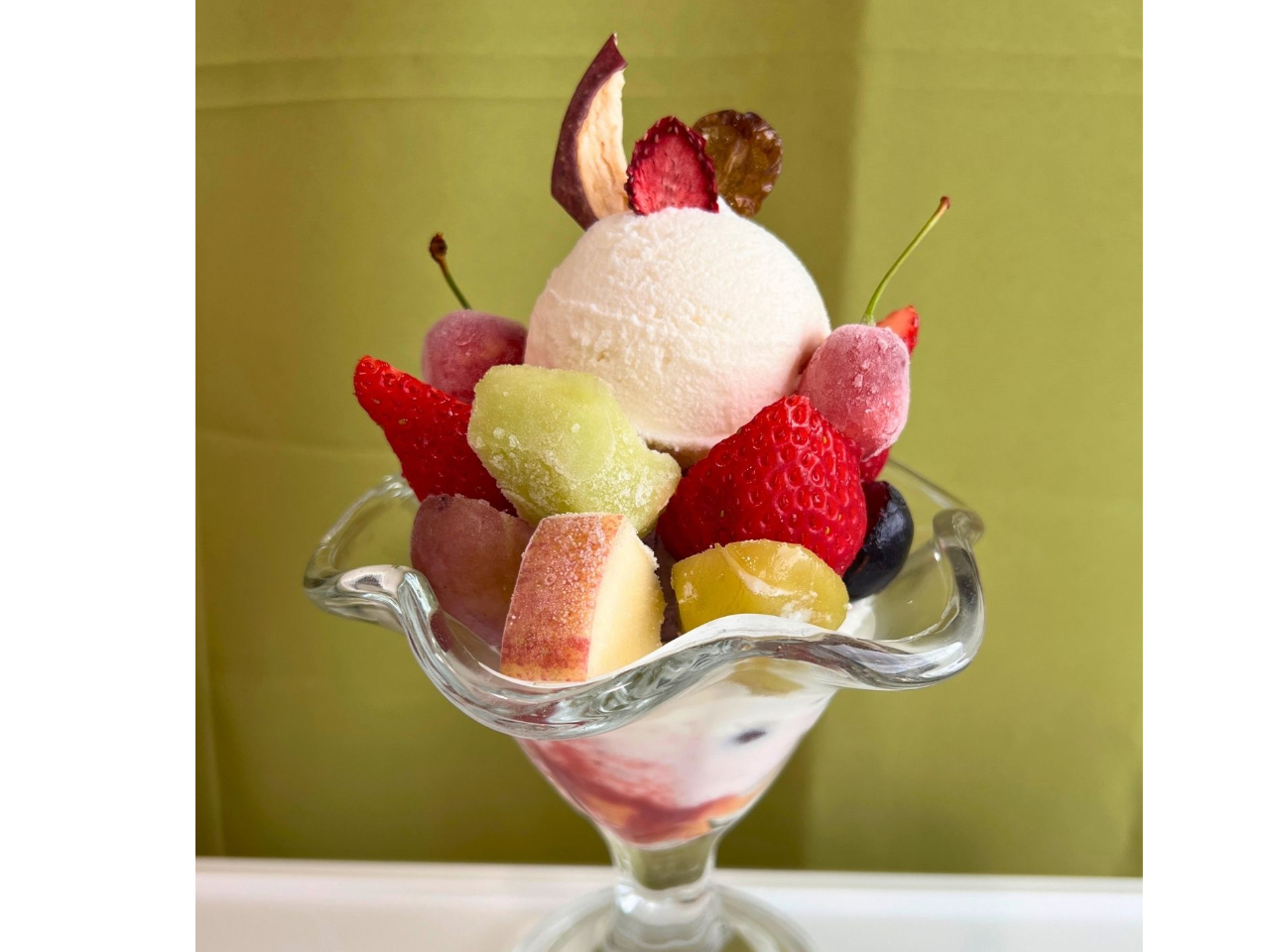 - 当園では30種以上の高級ぶどうを栽培し様々な加工品を製造しています! 冷凍や季節のフルーツとジェラート、ソース、ドライフルーツ、ヨーグルト、生クリームなどを使って自分だけのパフェを作っていただきます。
