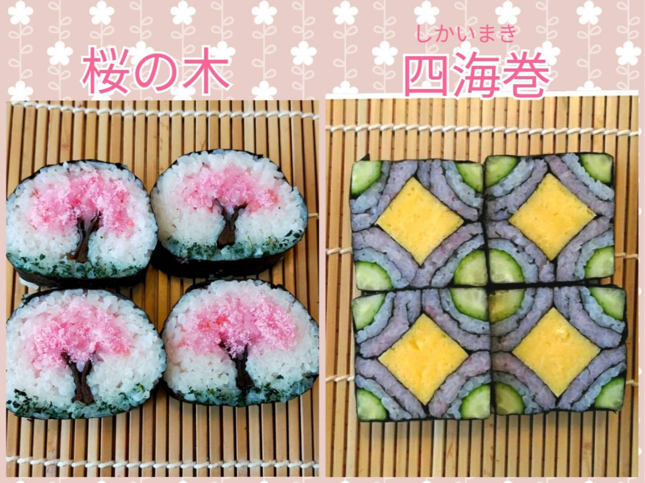 - 桜の木で春を感じよう! 四角いお寿司の四海巻きも作って食卓を華やかに♪ 華やかな色合いで気分も明るくなります♪