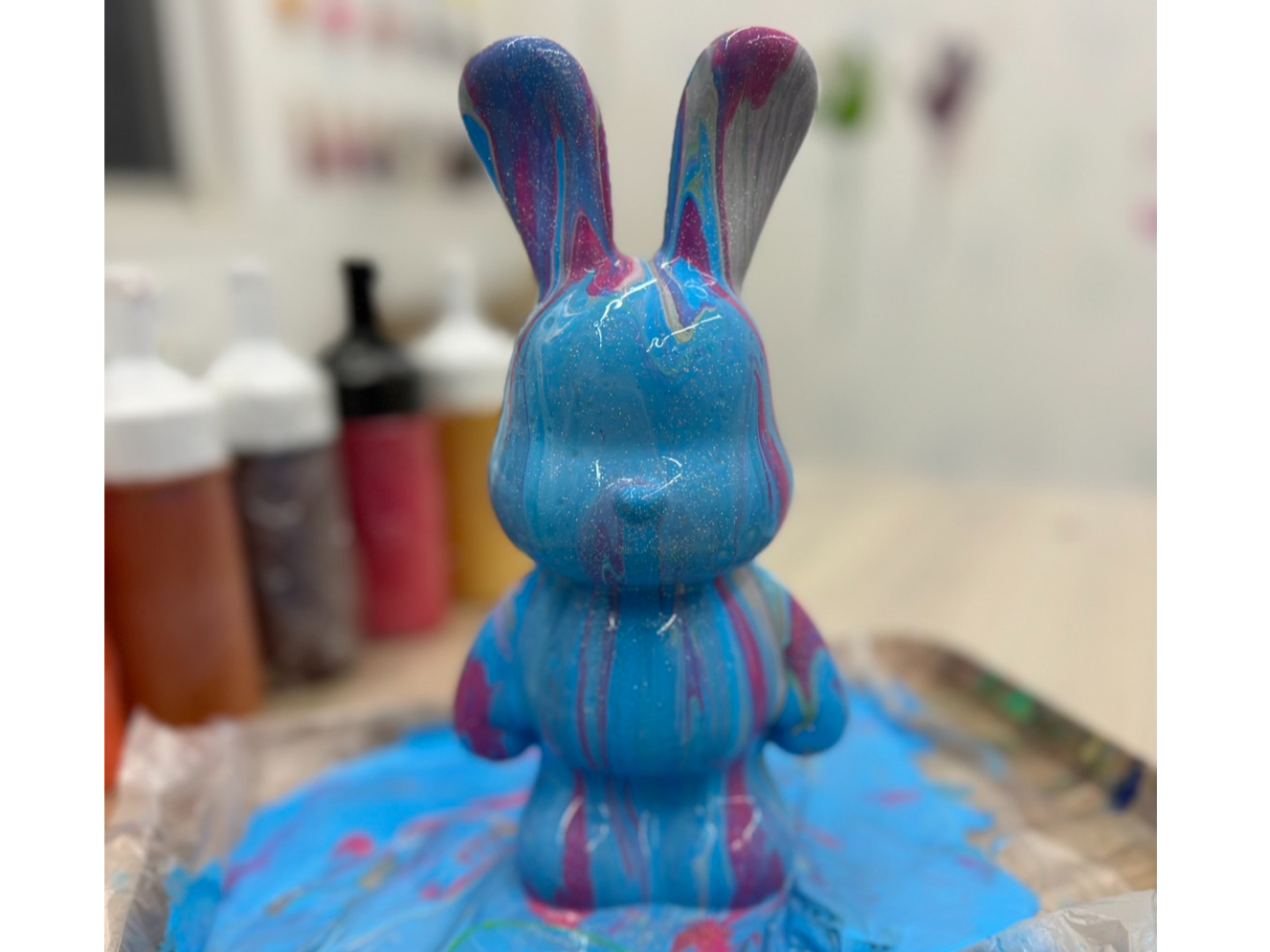 話題のベアアート体験スポット★ 【作業手順】 1 好きなフィギアを選択 2 好きな色の絵の具を選ぶ 3 好きなように垂らして さまざまなマーブル...